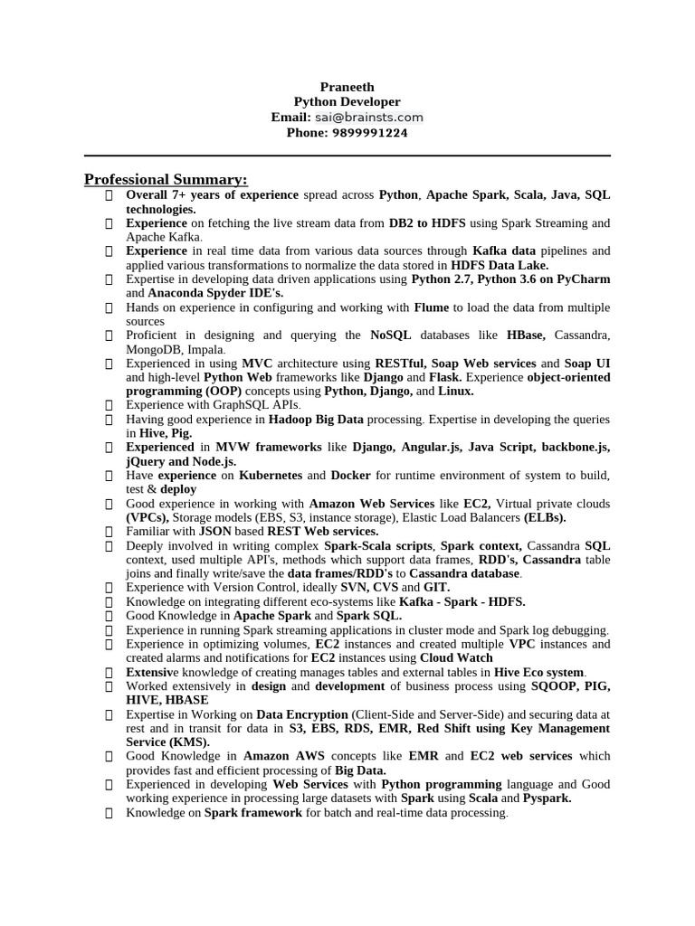 ⮚ Overall 7+ years of experience spread across Python, Apache Spark, Scala, Java, SQL
