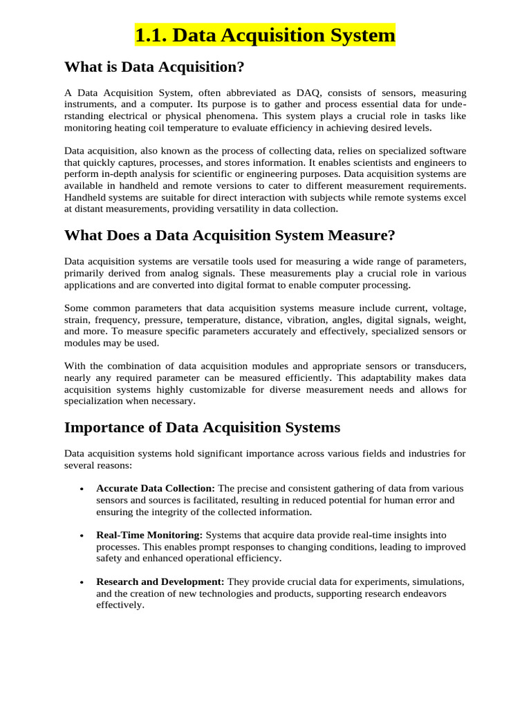 A Data Acquisition System, often abbreviated as DAQ, consists of sensors, measuring