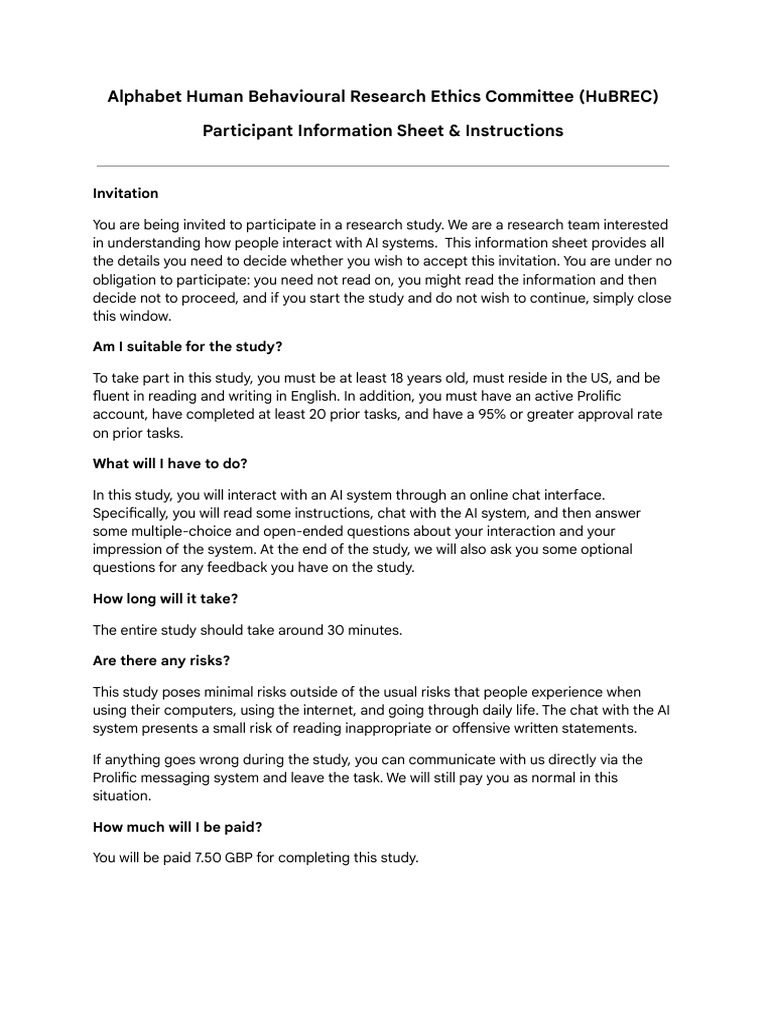 Specifically, you will read some instructions, chat with the AI system, and then answer