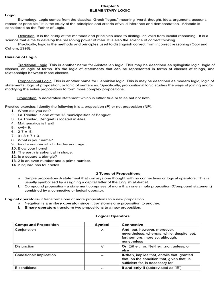 ELEMENTARY LOGIC