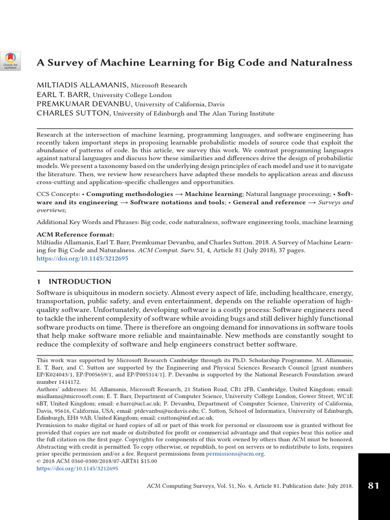 ing for Big Code and Naturalness. ACM Comput. Surv. 51, 4, Article 81 (July 2018), 37 pages.
