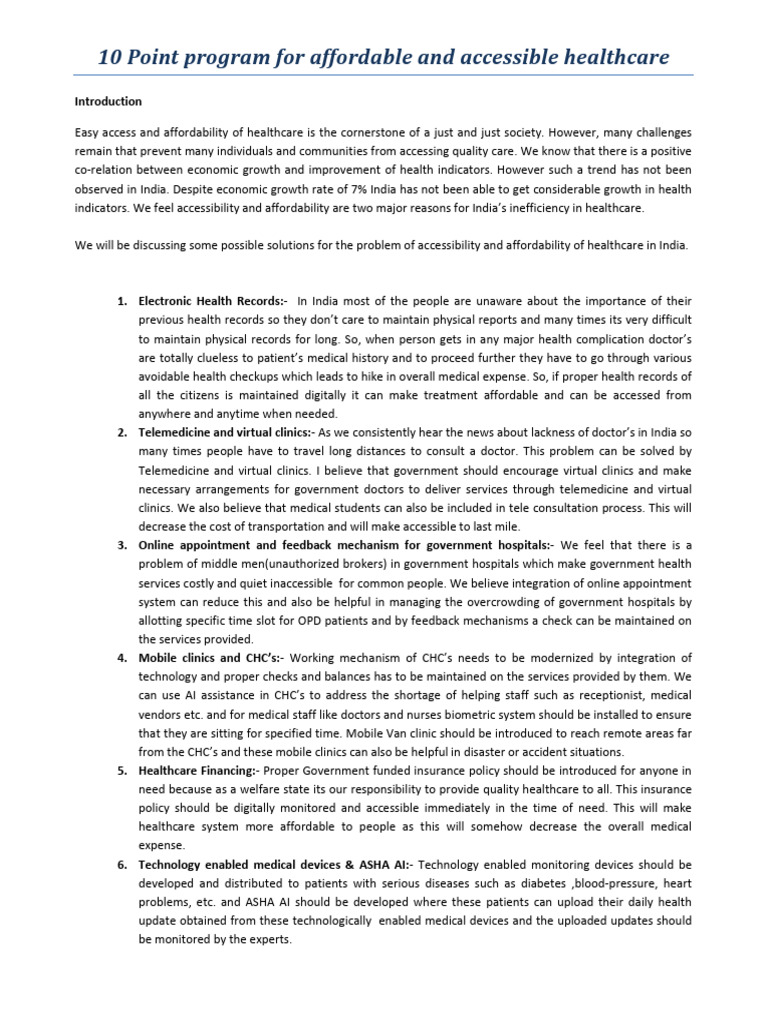 We will be discussing some possible solutions for the problem of accessibility and affordability of healthcare in India.