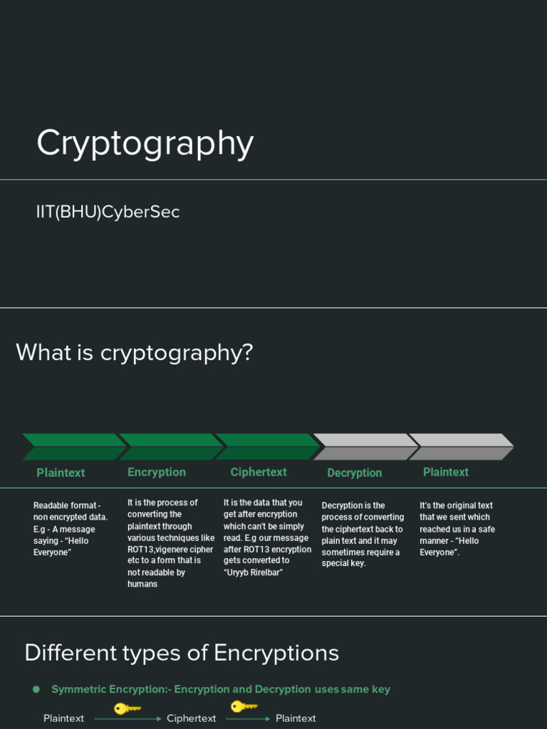 ● Symmetric Encryption:- Encryption and Decryption uses same key