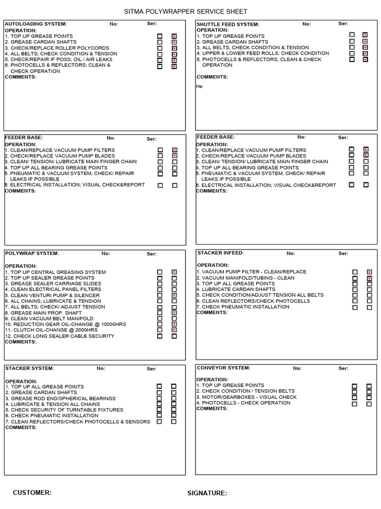 SITMA POLYWRAPPER SERVICE SHEET