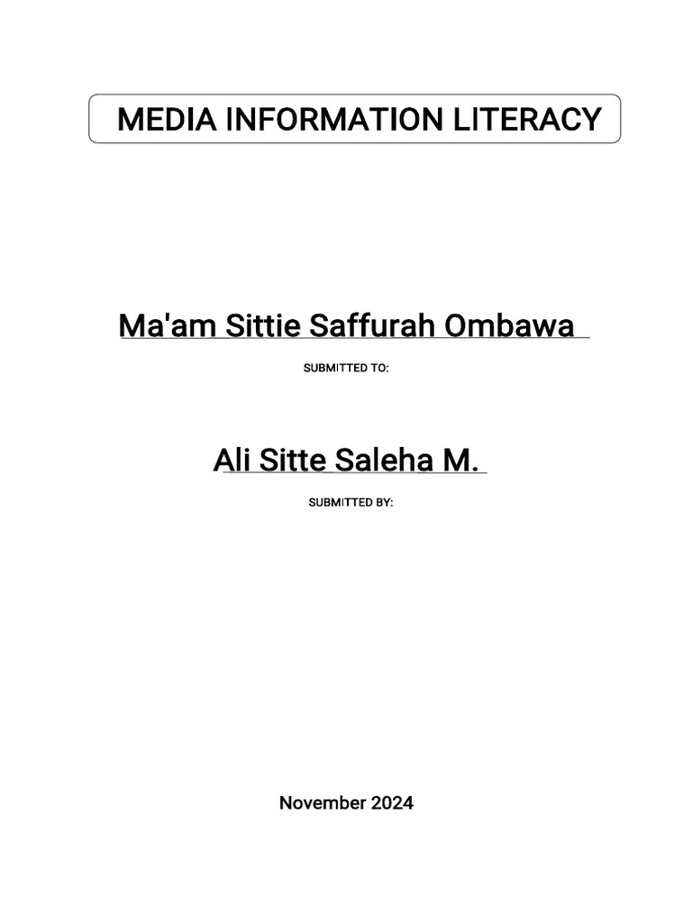 9. Media and Information Literacy- according to William James Potter (2004) define