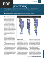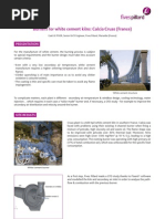 The kilns studied are: rotary kilns for the production of grey and white cement, rotary kilns for lime, nickel. The cement precalciners studied are suspension preheater type, cyclone type. The CFD software used is FLUENT of ANSYS. Two types of CFD simulations are carried out: Cold CFD simulations (ow patterns): They allow to improve the combustion air ow pattern to the burners in order to smooth the combustion and render the ame more symmetrical. Inside the rotary kiln, it appears also possible to simulate the introduction of hot secondary air into the ame, which inuences the ame temperature and radiation onto the calcinated bed. CFD simulations in combustion: They allow to compare the inuence of different burner designs on ame shape on the radiation received by the material bed to be calcinated, to understand the inuence of several inlet parameters concerning either the fuel used, or the kiln geometrical dimensions, the position of the burner in the kiln, the various velocities. Since the studies are essentially comparative, the necessity to master absolute values is not essential. However, it is possible to tune the model by taking an example of a kiln in operation (for which we dispose of kiln shell scanner recordings as well as all the geometrical dimensions and inlet data parameters), and adapt the model so that it gives a similar temperature prole on the kiln shell to the one measured, thus ensuring that the simulated ame pattern is comparable to the experimental one.