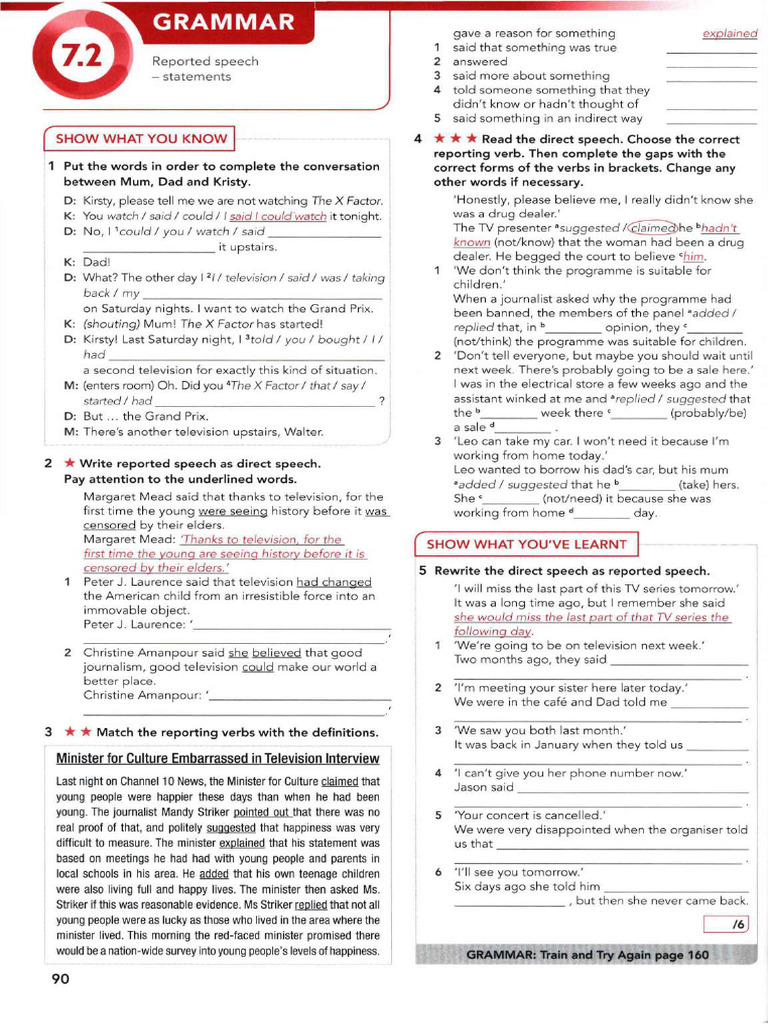 censored by their elders.' 5 Rewrite the direct speech as reported speech.