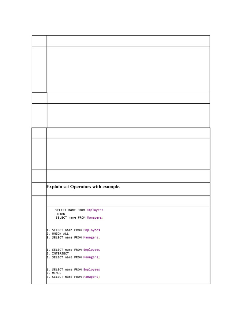 Ans. 1.Union: Combines results from two SELECT queries, removing duplicates.