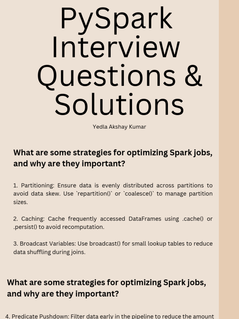 3. Broadcast Variables: Use broadcast() for small lookup tables to reduce