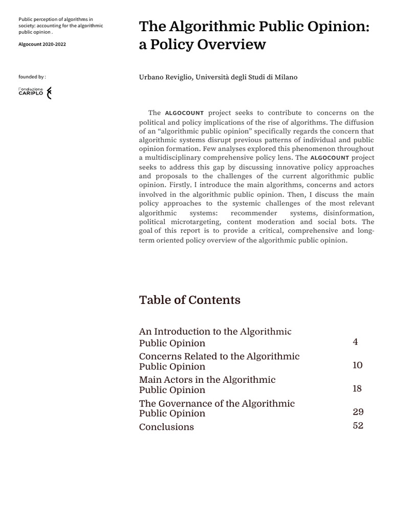 opinion. Firstly, I introduce the main algorithms, concerns and actors