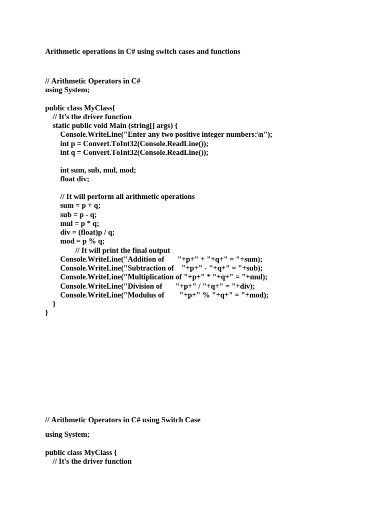 Console.WriteLine("Division of "+p+" / "+q+" = "+Div(p,q));