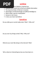 What games do you play? Why? How much Lme do you spend on social media a day? What