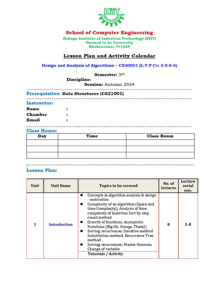Design and Analysis of Algorithms – CS30001 (L-T-P-Cr: 3-0-0-3)