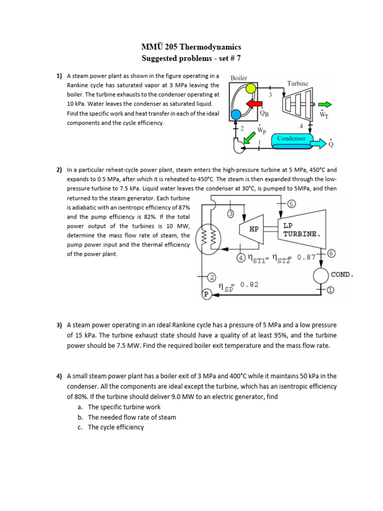1) A steam power plant as shown in the figure operating in a