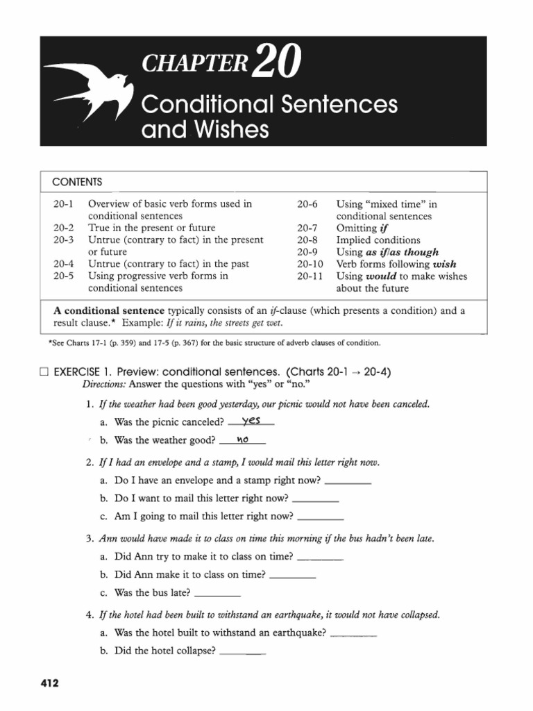 20-4 Untrue (contrary to fact) in the past 20-10 Verb forms following wish