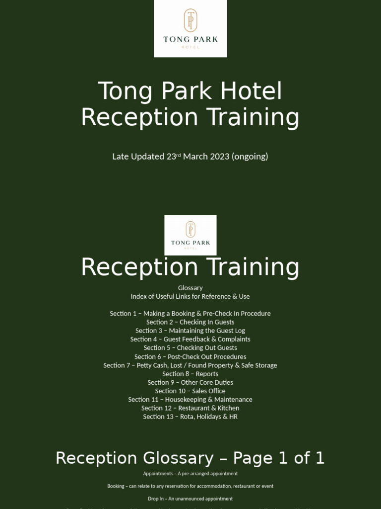 ask the customer to do so) to info@tongparkhotel.co.uk