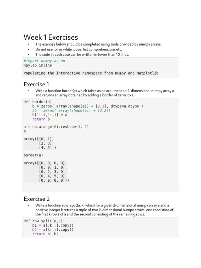 • The exercise below should be completed using tools provided by numpy arrays.