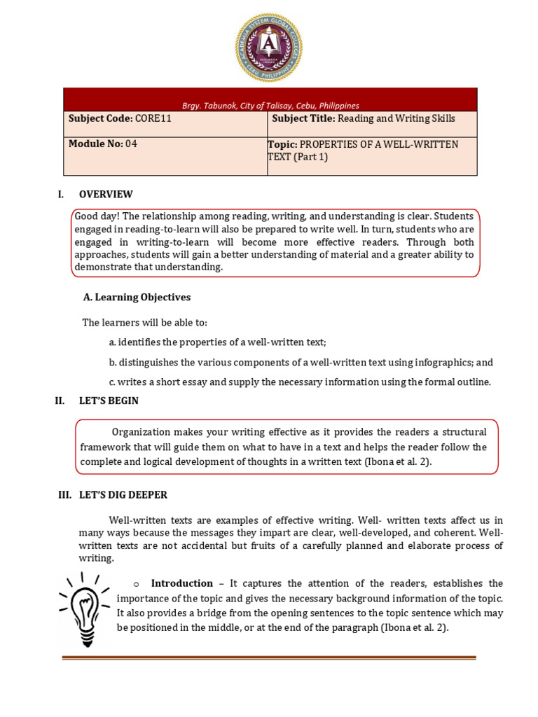 Module No: 04 Topic: PROPERTIES OF A WELL-WRITTEN