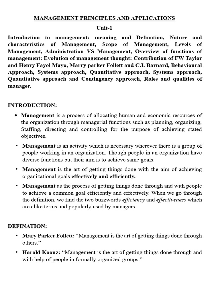 Introduction to management: meaning and Defination, Nature and