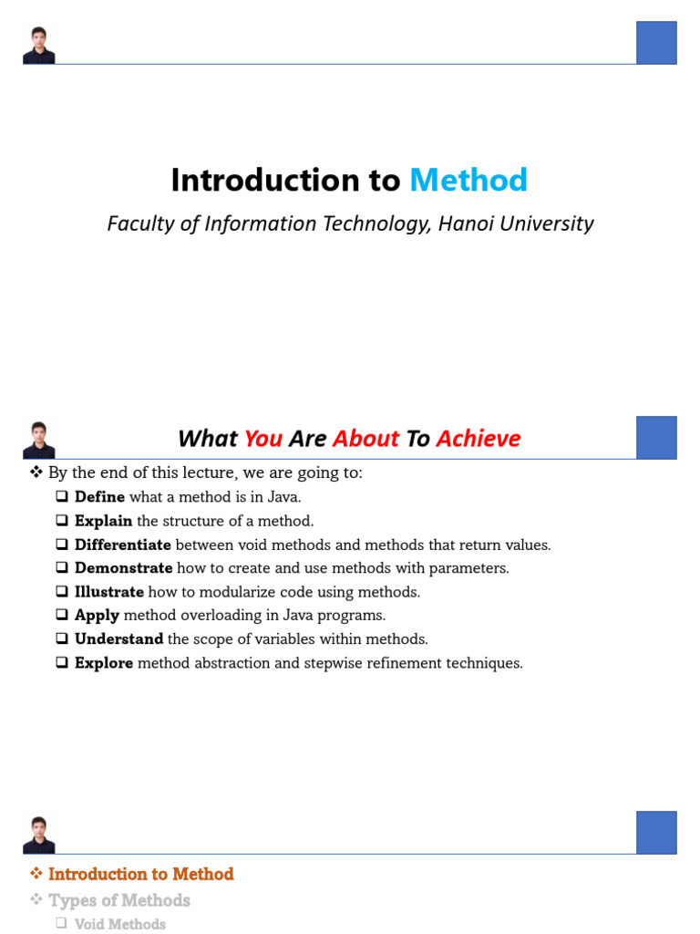 ❖ In a method definition, you define what the method is to do. To execute the method, you