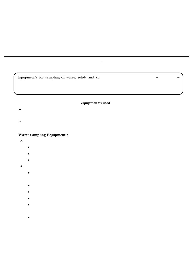 Equipment’s for sampling of water, solids and air- Sample preservation Equipment – incubators –