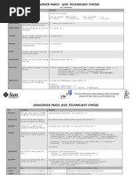 1. JSP and XML syntax cannot be mixed within a page. 2. A page in one syntax can include or forward to a page in the other syntax. 3. Some action elements have attributes whose value can be computed at request time. In JSP syntax, the format of such a value is the same as a JSP expression: <%= expression %>. In XML syntax, the format of the value is %= expression %. No equivalent. <jsp:root xmlns:jsp="http://java.sun.com/JSP/Page" [xmlns:taglibPrefix="URI"]+ ... version="1.2"> other elements </jsp:root No equivalent. <jsp:declaration> declaration [ declaration; ]+ ... </jsp:declaration <jsp:expression> expression </jsp:expression> <jsp:scriptlet> code fragment </jsp:scriptlet> <jsp:text> template data </jsp:text> XML syntax allows an XML element that does not represent a standard or custom action to appear anywhere a jsp:text can appear. Such an element is passed to the current out.