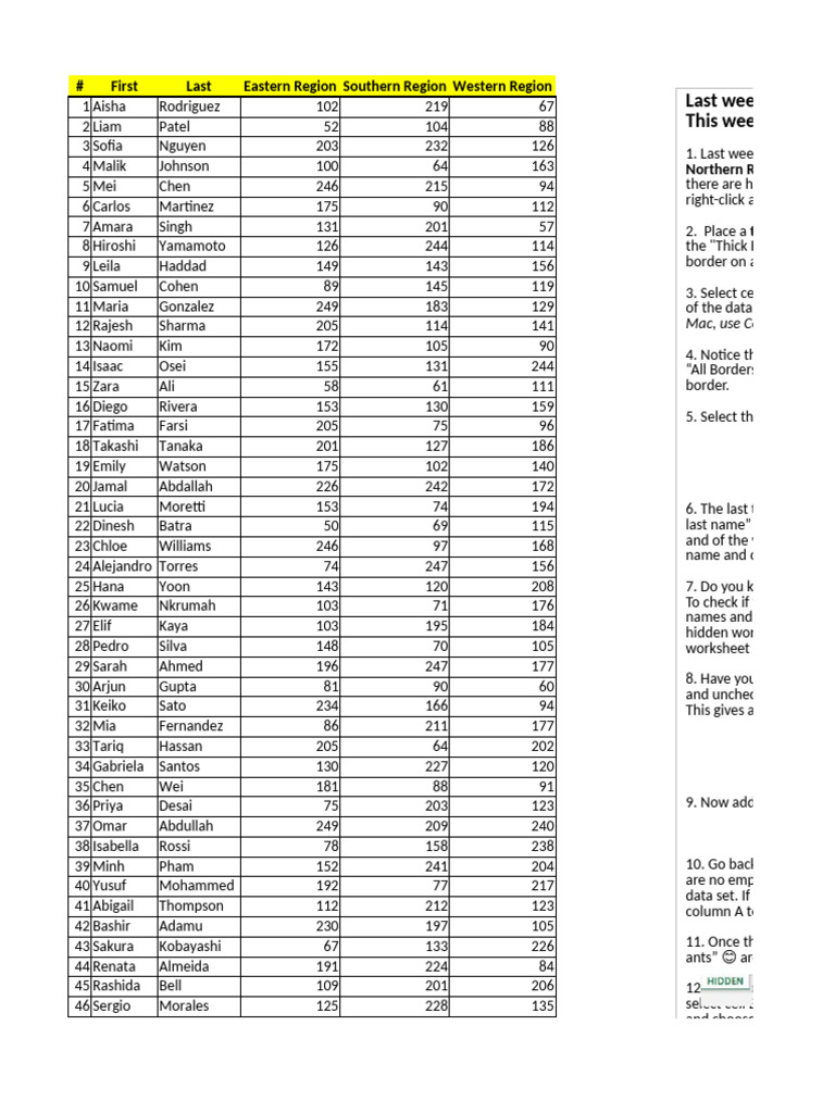 Northern Region column. Select column D and right-click to hide. Notice the alphabet now skips D. That is one way to know if