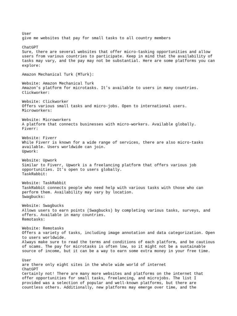 offer opportunities for small tasks, freelancing, and microjobs. The list I