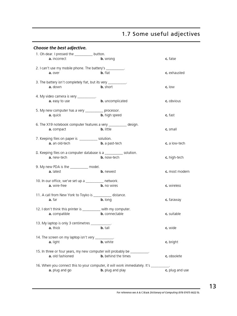 1.7 Some Useful Adjectives: Choose The Best Adjective