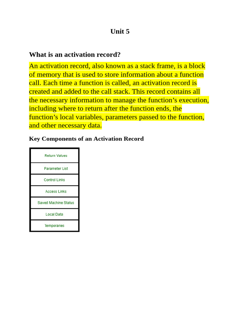 Key Components of an Activation Record