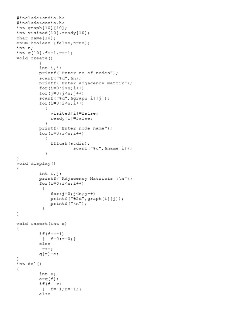 printf("\n Enter 1.create 2.display 3.bfs 4.exit\n");