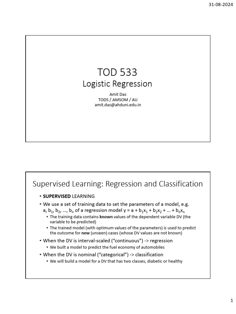 • We will build a model for a DV that has two classes, diabetic or healthy