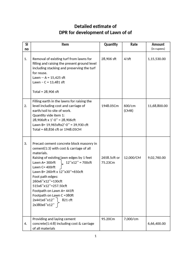 Raising of existing lawn edges by 1 feet 2658.5cft or 12,000/CM 9,02,760.00