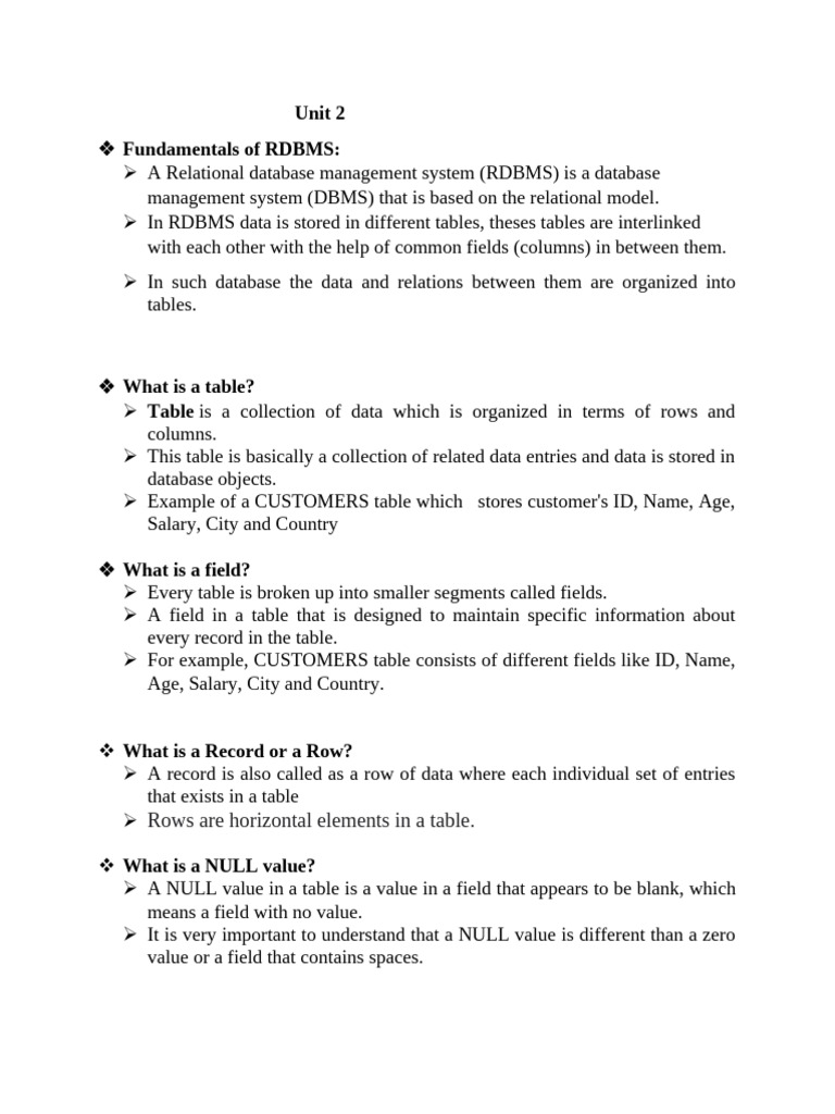 For example, CUSTOMERS table consists of different fields like ID, Name,