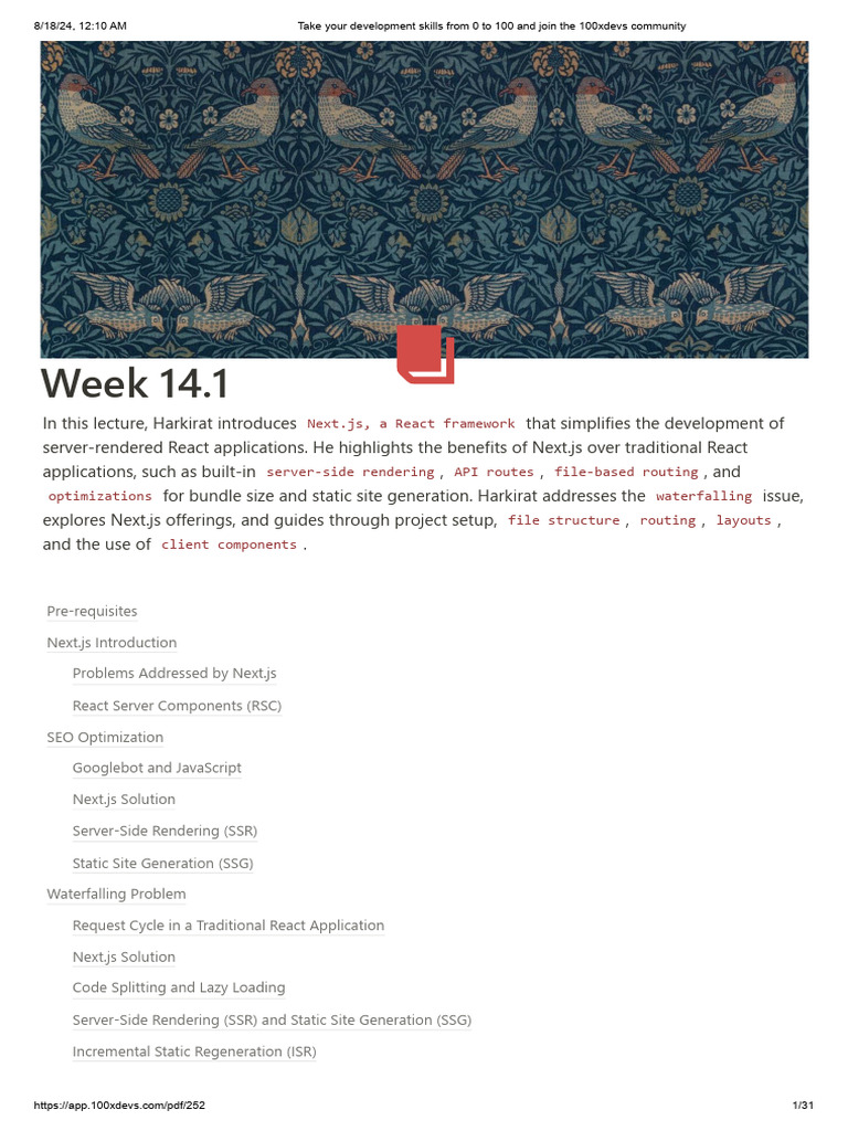 8/18/24, 12:10 AM Take your development skills from 0 to 100 and join the 100xdevs community