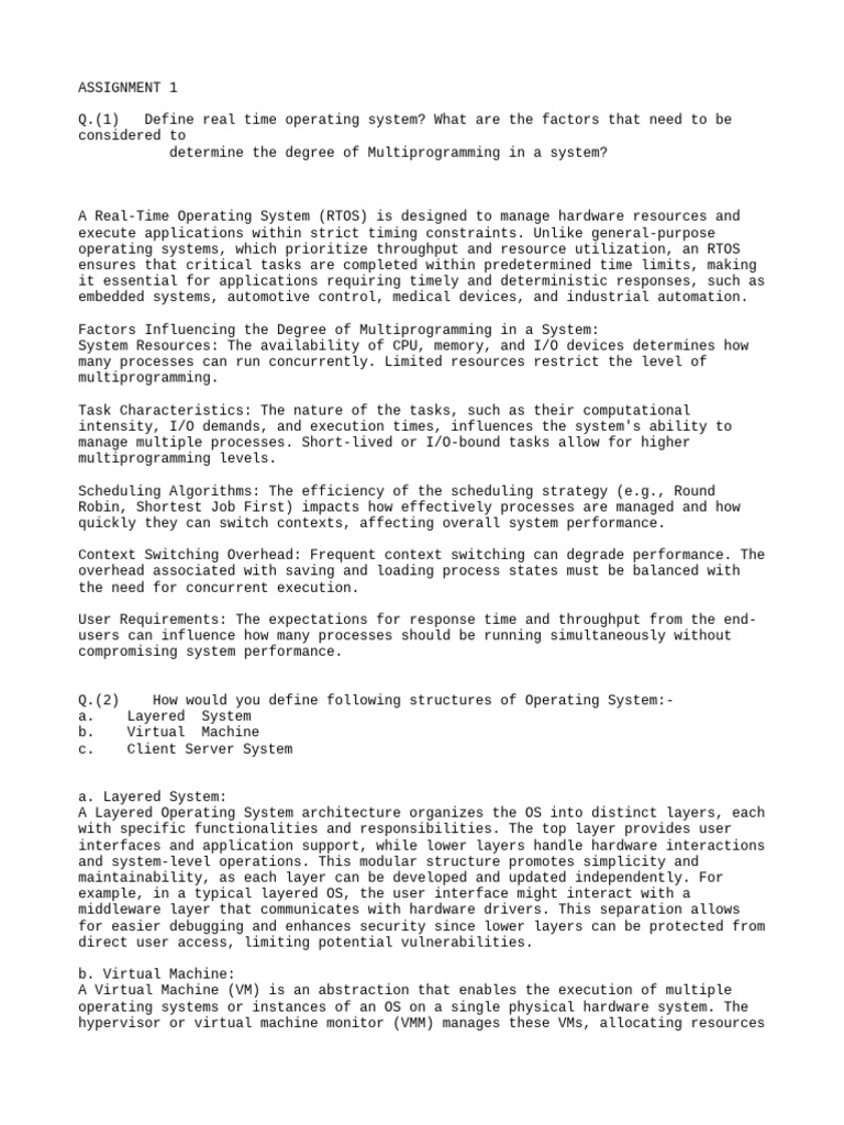 A Real-Time Operating System (RTOS) is designed to manage hardware resources and