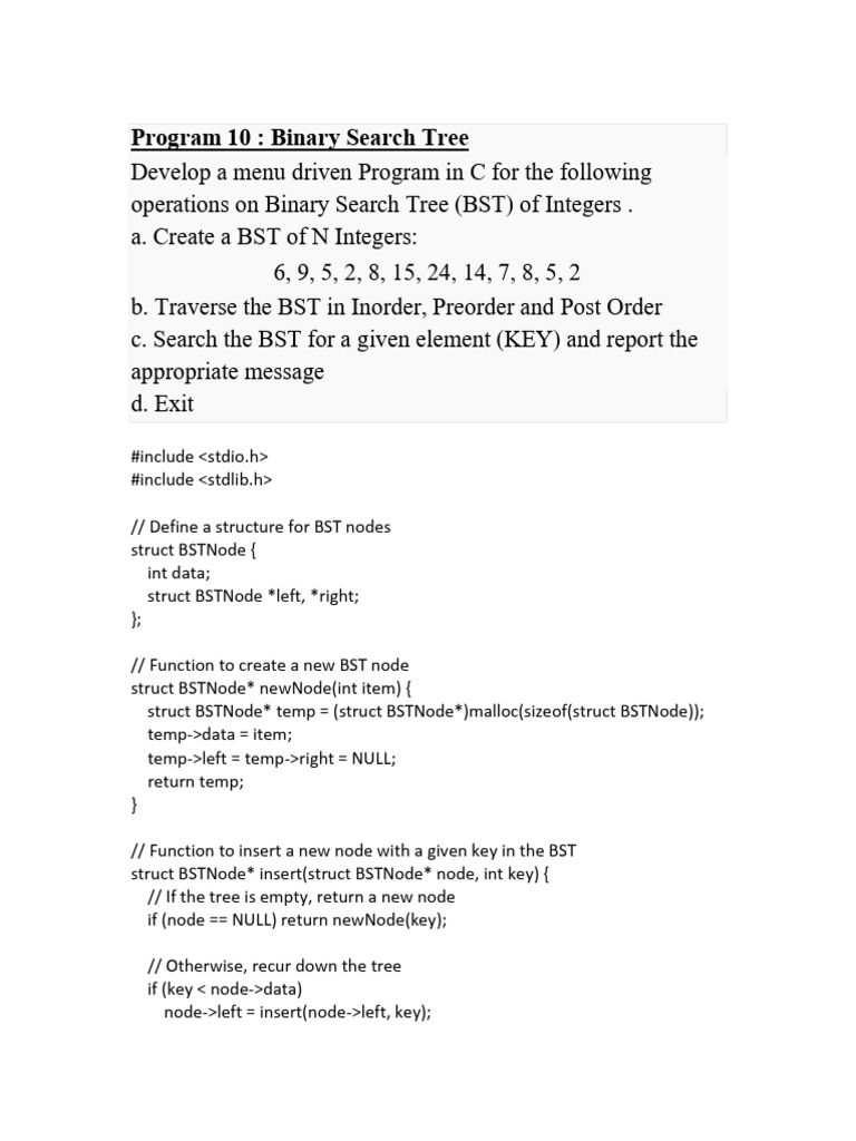 b. Traverse the BST in Inorder, Preorder and Post Order