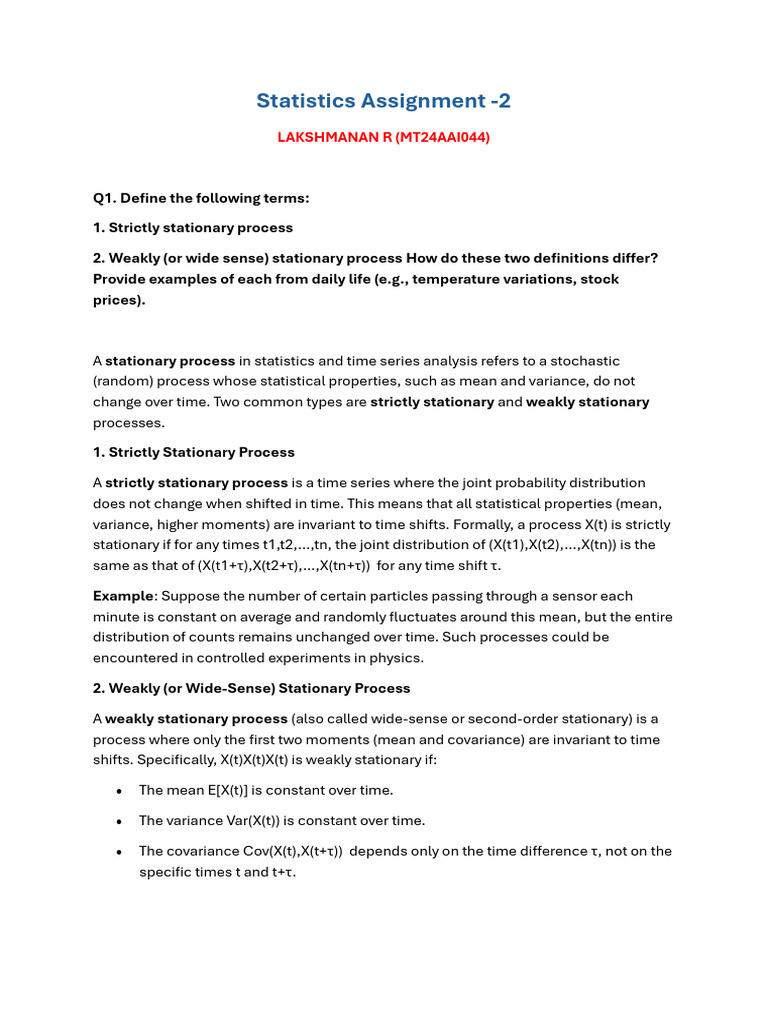 o The variance of the process, Var(X(t)) =E[(X(t)−μ)2], must also be constant