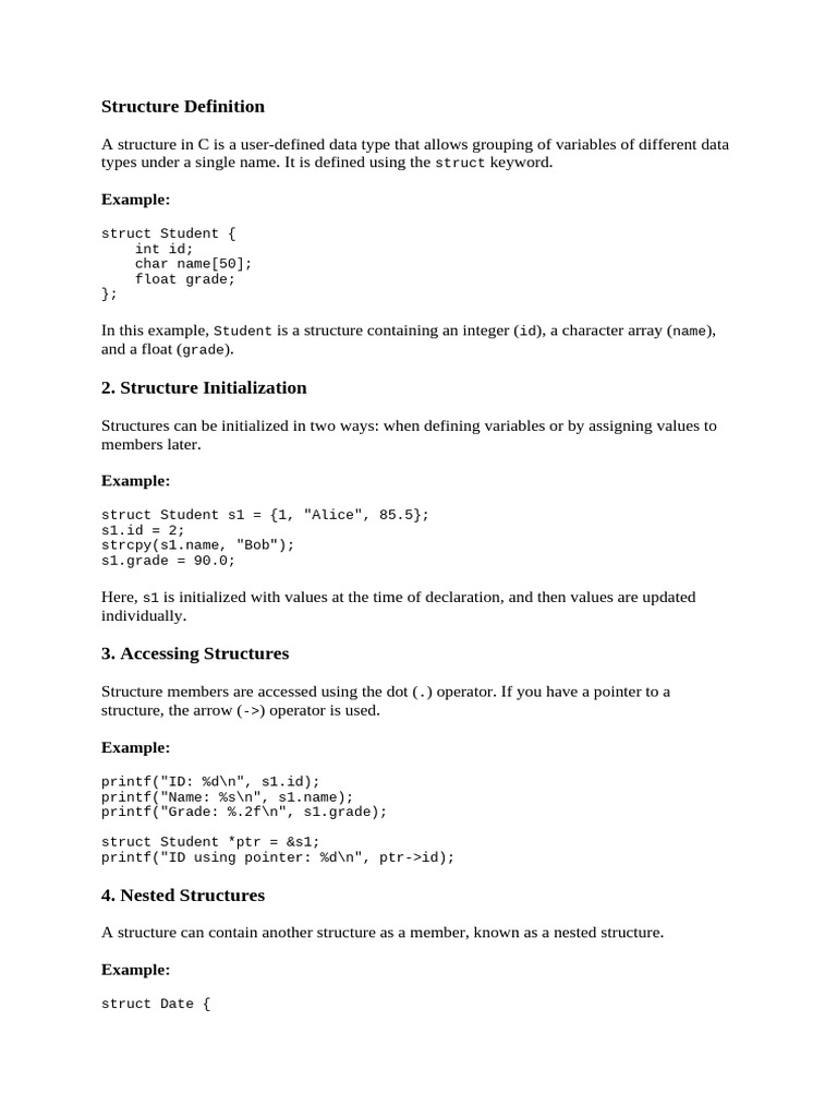 In this example, Student is a structure containing an integer (id), a character array (name),