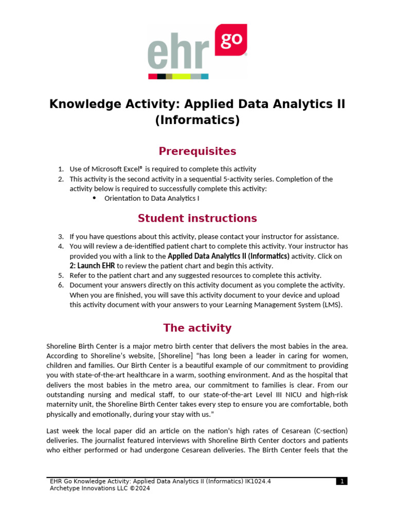EHR Go Knowledge Activity: Applied Data Analytics II (Informatics) IK1024.4 2