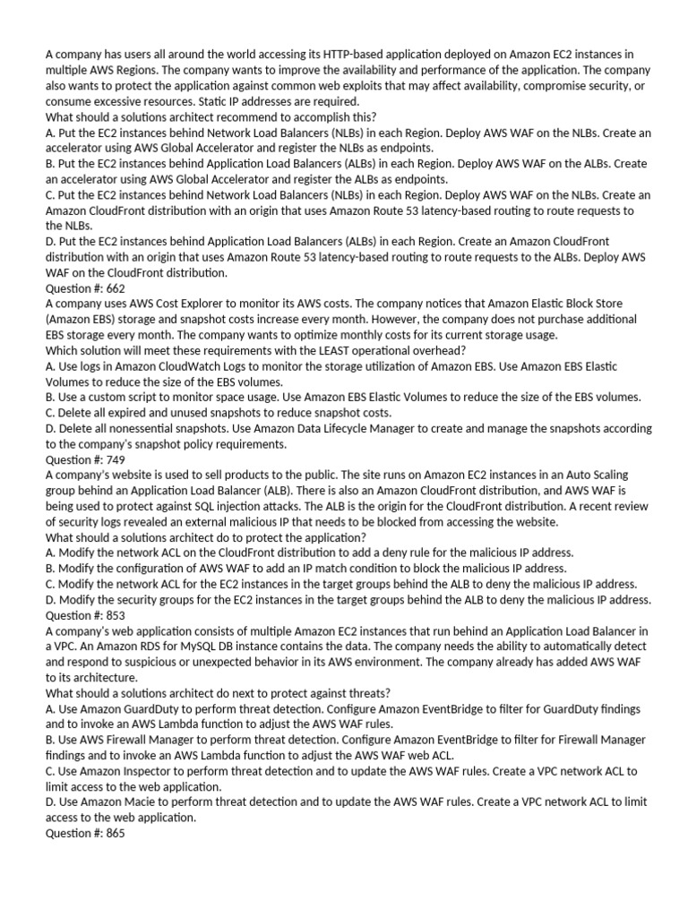 multiple AWS Regions. The company wants to improve the availability and performance of the application. The company