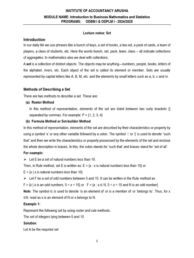 Lecture notes: Set