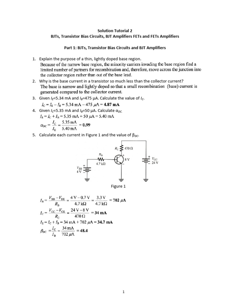 Part 1: BJTs, Transistor Bias Circuits and BJT Amplifiers
