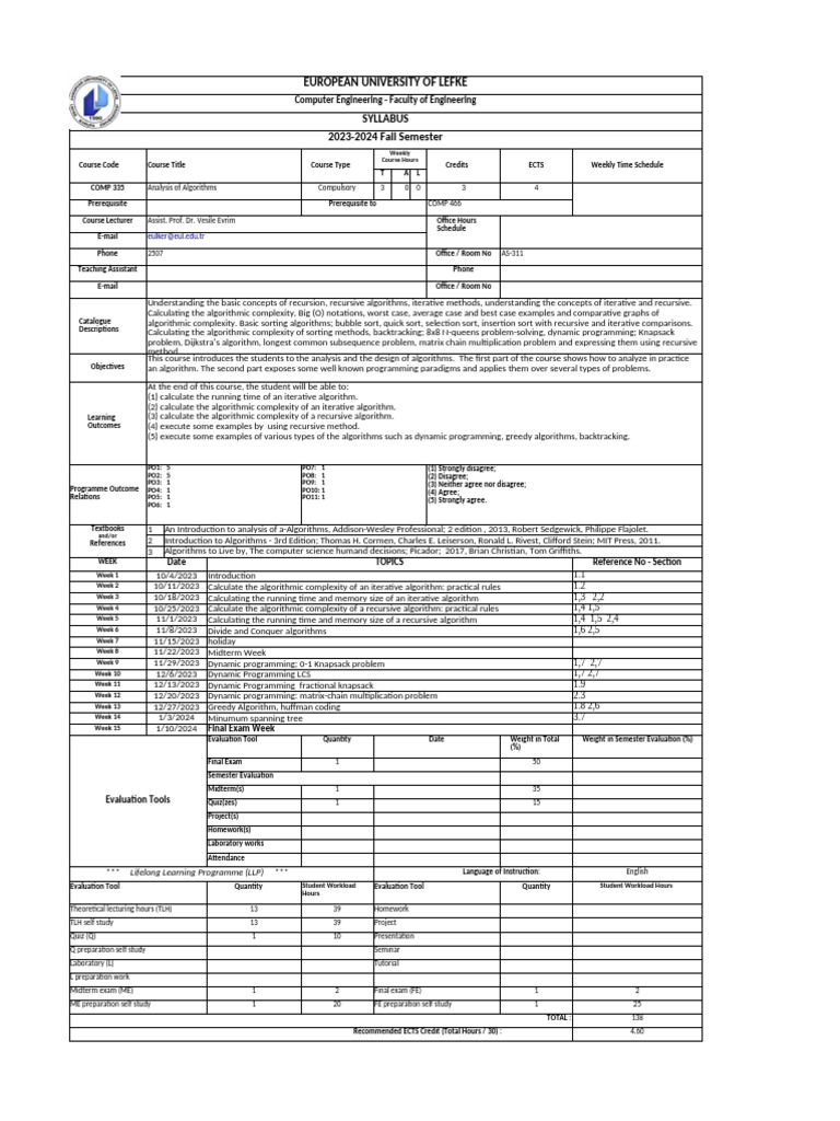 COMP 335 Analysis of Algorithms Compulsory 3 0 0 3 4