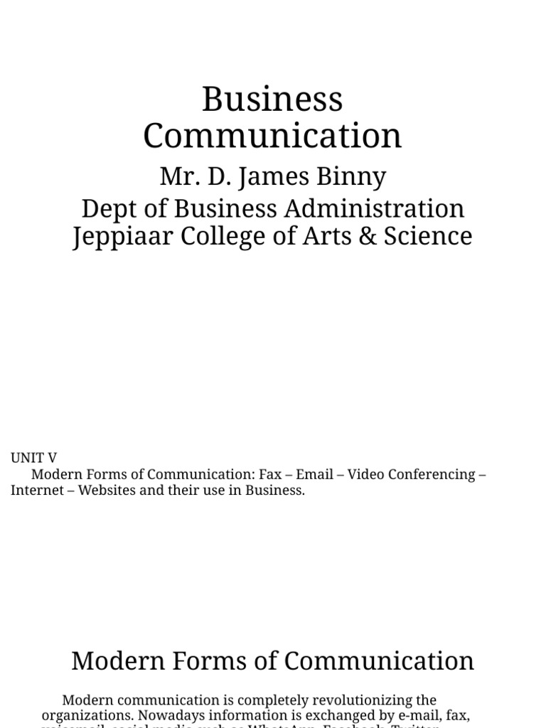 Modern Forms of Communication: Fax – Email – Video Conferencing –