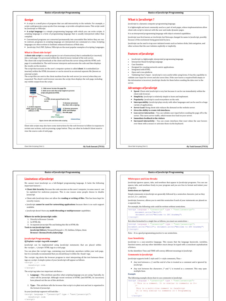 Client Side Scripting (Unit 1) -By Yash Sawant (TYCO) Client Side Scripting (Unit 1) -By Yash Sawant (TYCO)