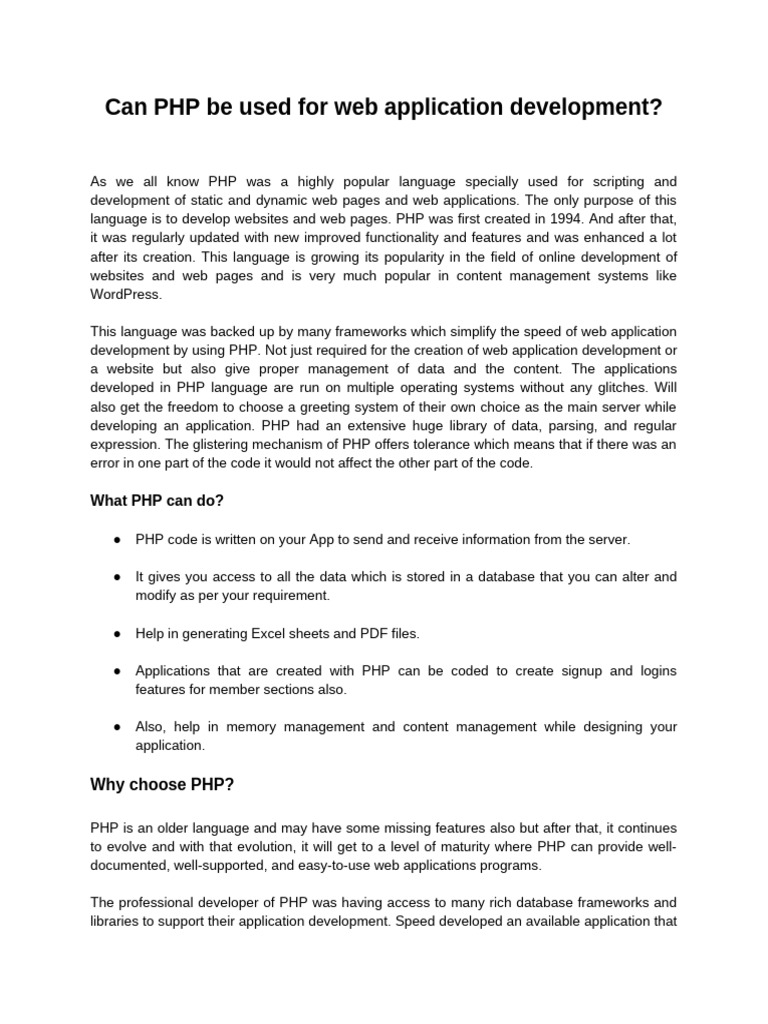 developing an application. PHP had an extensive huge library of data, parsing, and regular
