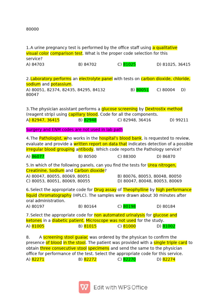 A. 80500 B. 88331-26, 88307 C. 80502 D. 88331-26, 88332-