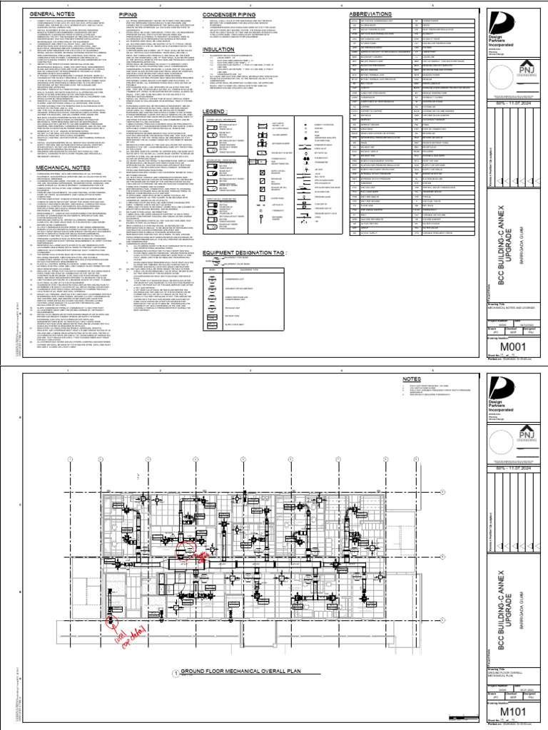 18. SLOPE CONDENSATE PIPING AT A MINIMUM OF 1/4 INCH PER FOOT. CAUSING A HYDRAULIC PRESSURE EFFECT DURING THE PACKAGE UNIT MECHANICAL NOTES AND LEGENDS
