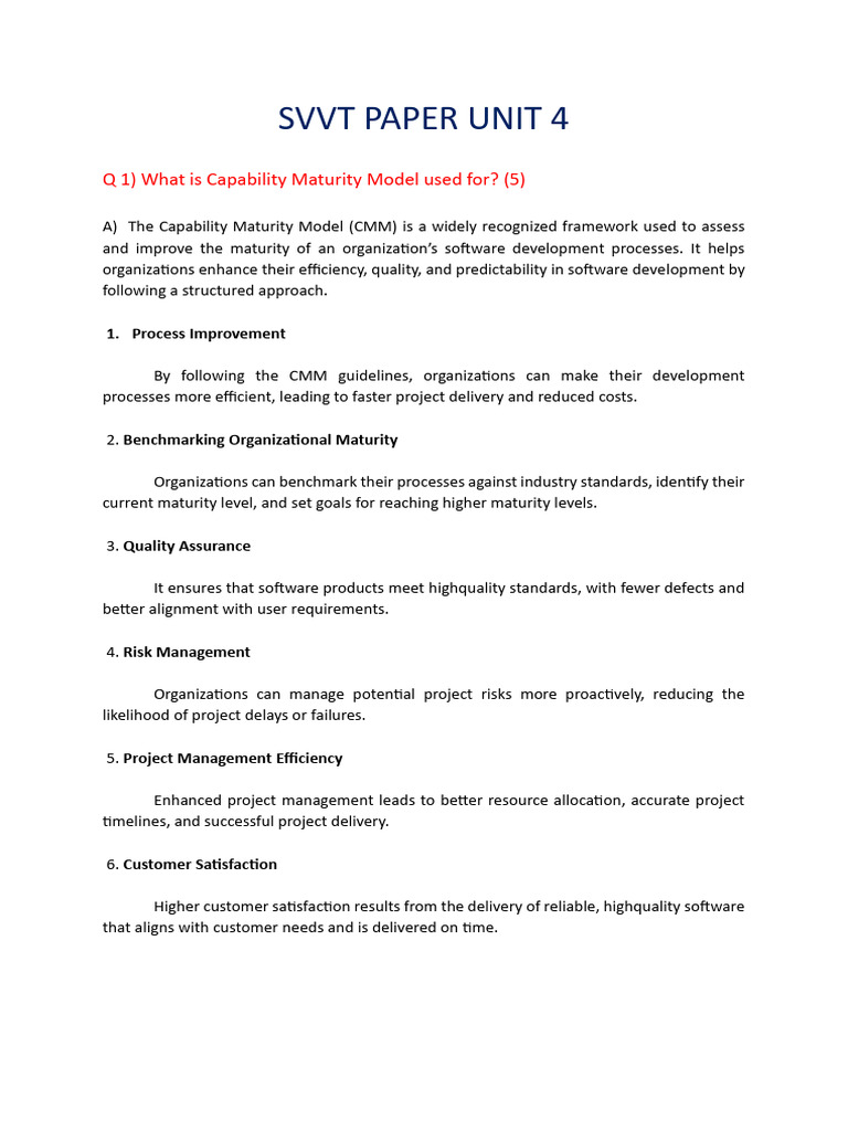 A) The Capability Maturity Model (CMM) is a widely recognized framework used to assess